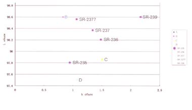 Color L*(CIELAB) | 98,31 | 98,16 | 98,26 | 98,13 |