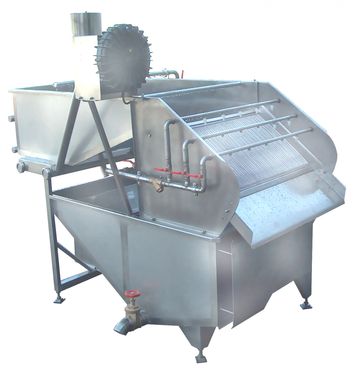 1 – элеватор + воздушный сепаратор; 2 – моечная вихревая / барботажно-вихревая машина;