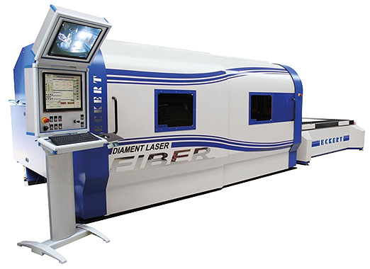 Установка лазерной резки DIAMENT FIBER является новейшим достижением фирмы ECKERT (Польша-Италия). Это лазерный разрезной станок, основанный на волоконно-оптической технологии. Он отличается высокой эффективностью, более простой конструкцией, а также широким диапазоном разрезаемых материалов. Благодаря применению оптических волокон стало возможным исключение дорогой в обслуживании системы зеркал, что в значительной степени повлияло на снижение расходов по обслуживанию и сервису. С другой стороны новый лазерный источник с невиданной до сих пор мощностью способствует значительной экономии электроэнергии.