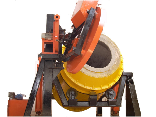 Стальной кожух печи сделан коническим с обеих сторон. Основной кожух поддерживается массивной стальной рамой с приводным роликом. Для осуществления наклона к раме присоединены два гидравлических цилиндра. Печь вращается при помощи DC двигателя/приводом переменной частоты через зубчатый редуктор. Скорость вращения печи регулируется от 4 от 6 оборотов в минуту. Разная скорость вращения позволяет плавить разный тип лома. Работа с печью не представляет сложностей для пользователя. Вмешательство человека сведено до минимума благодаря высокой степени автоматизации.
